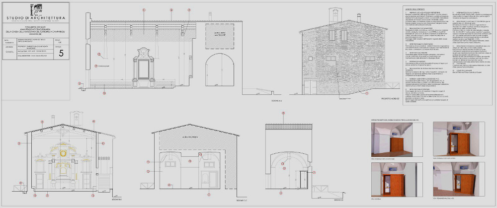 Progettazione architettonica, progetto degli arredi liturgici, direzione dei lavori architettonici, impiantistici e direzione artistica del restauro degli apparati decorativi a stucco
